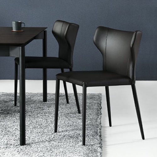 重厚なレザーが存在感を際立たせるモダンシルエット。洗練された大人の空間を創るダイニングチェアです。