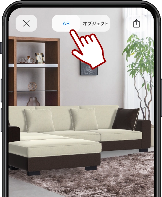 家具を試し置き「ARモード」では部屋に家具を仮想的に配置できます。「オブジェクトモード」では商品を360°回転させることができます。